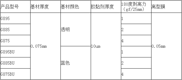 1.以聚酯薄膜為基材,涂布進口超低粘硅膠制作而成的保護膜,粘性低且性能穩定。