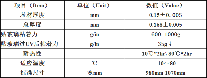 紫外線防護使用PO膜或者PET膜作為襯底,涂以丙烯酸粘合劑PET離型膜。